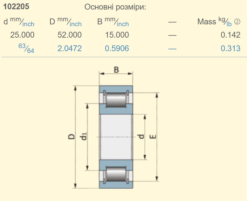 Розмір підшипника 102205 розмір 25х52х15 102206 розмір 30х62х16 102207 розмір 35х72х17 102208 розмір 40х80х18 102209 розмір 45х85х19 102210 розмір 50х90х20 102211 розмір 55х100х21 102212 розмір 60х110х22 102213 розмір 65х120х23 102214 розмір 70х125х24 102215 розмір 75х130х25 102216 розмір 80х140х26 102217 розмір 85х150х28 |