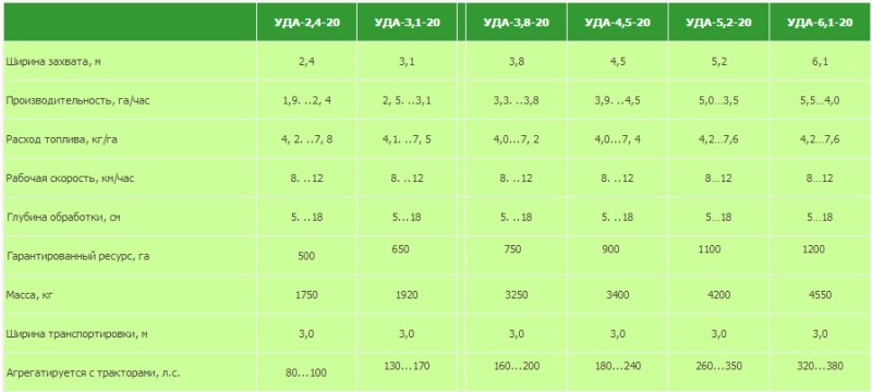 Агрегаты марки УДА предназначены для обработки почв всех типов на глубину 5...18 см. под посев злаковых культур, одно- и многолетних трав, подсолнуха, кукурузы.