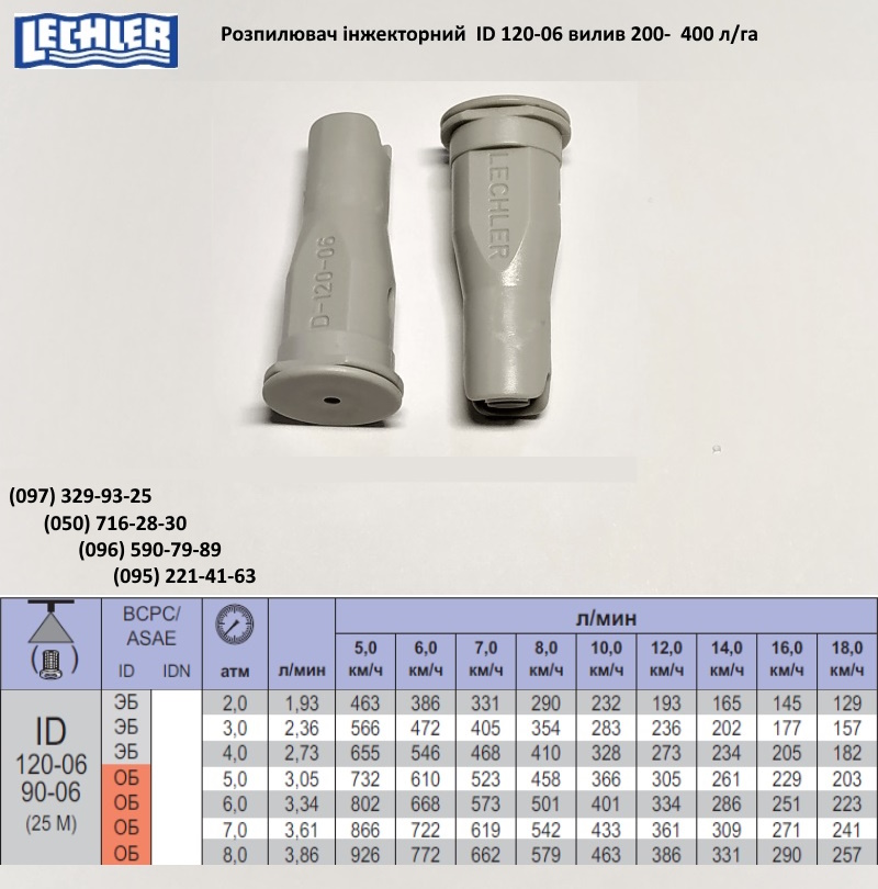 Характеристики розпилювачів ID Lechler