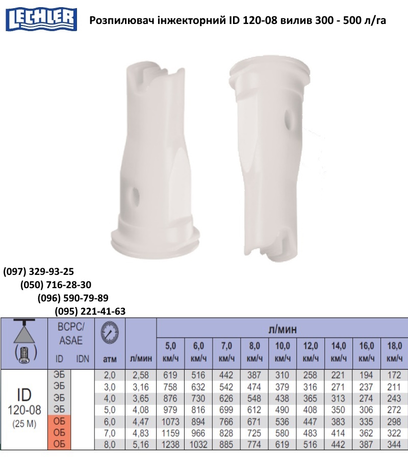 Характеристики розпилювачів ID Lechler