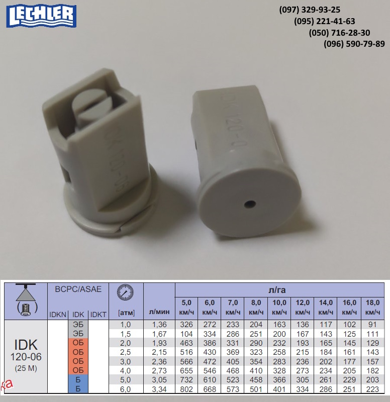 Характеристики розпилювачів IDK Lechler