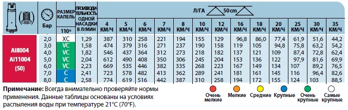 • Изготавливаются наконечники с восемьювидами производительности и рекомендованным давлением 2–8 бар (30–115 PSI).