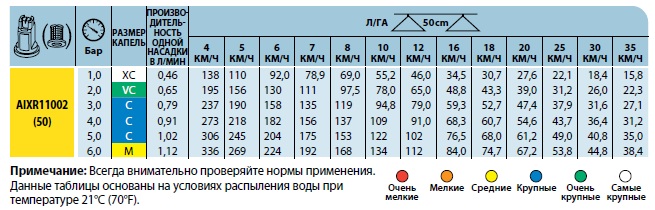 Норми вилива розпилювача AIXR110-02 ![]() ![]() |