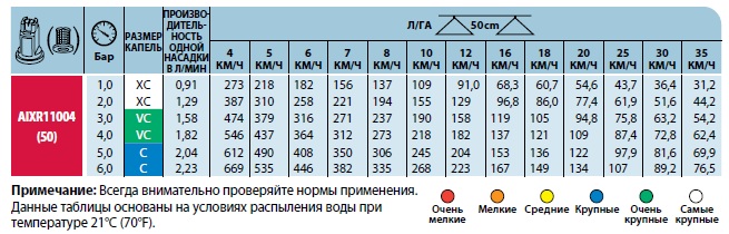 ![]() Норми вилива розпилювача AIXR110-04 ![]() ![]() |