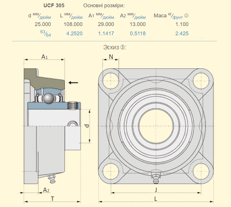 ![]() UCF305 розмір корпуса 108х108 розболтовка 80мм / діаметр вала 25мм ![]() UCF305 розмір корпуса 108х108 розболтовка 80мм / діаметр вала 25мм |