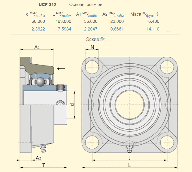 ![]() UCF211 розмір корпуса 162х162 розболтовка 130мм / діаметр вала 55мм ![]() UCF211 розмір корпуса 162х162 розболтовка 130мм / діаметр вала 55мм |