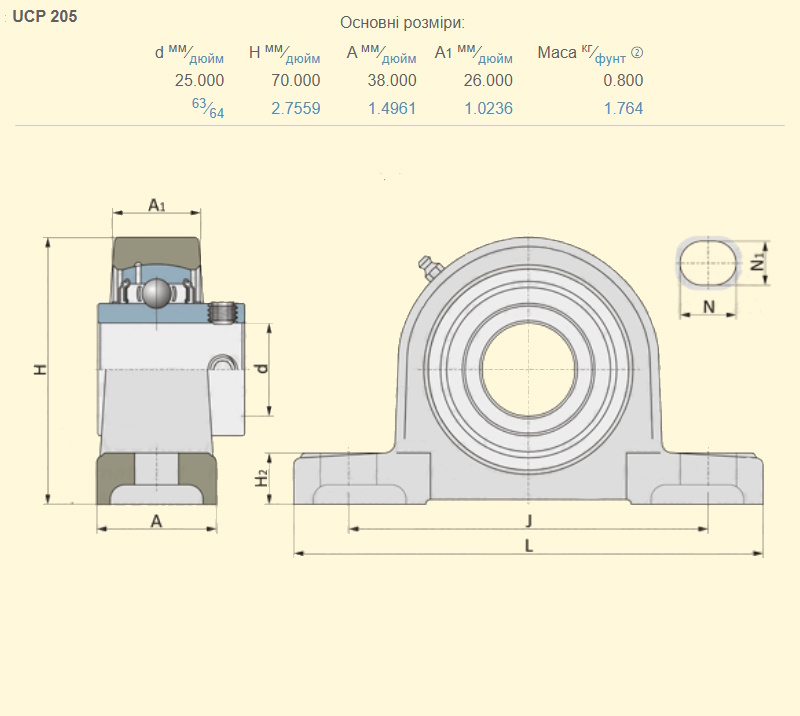 ![]() UCP205 розмір корпуса 140х70 розболтовка 105мм / діаметр вала 25мм ![]() UCP205 розмір корпуса 140х70 розболтовка 105мм / діаметр вала 25мм |
