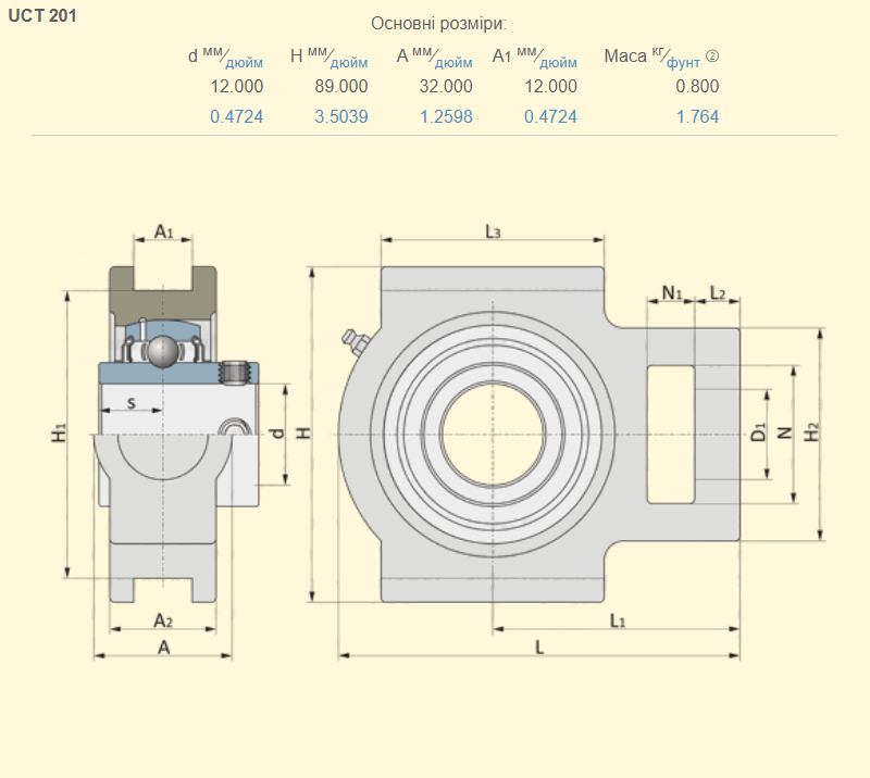![]() UCT201 розмір корпуса 94х89х32 діаметр вала 12мм ![]() UCFC201 розмір корпуса 94х89х32 діаметр вала 12мм |