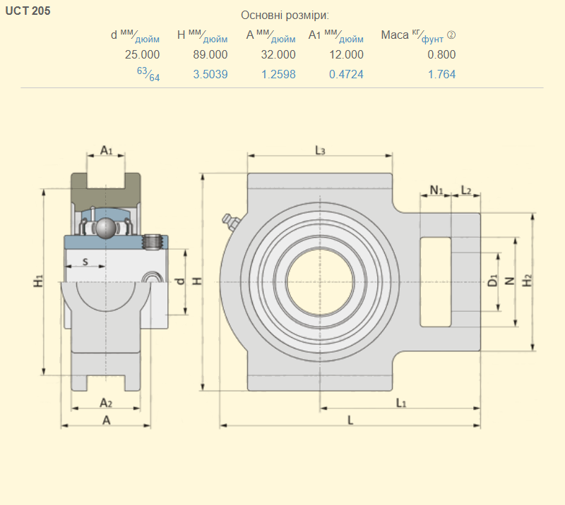 ![]() UCT205 розмір корпуса 97х89х32 діаметр вала 25мм ![]() UCFC205 розмір корпуса 97х89х32 діаметр вала 25мм |