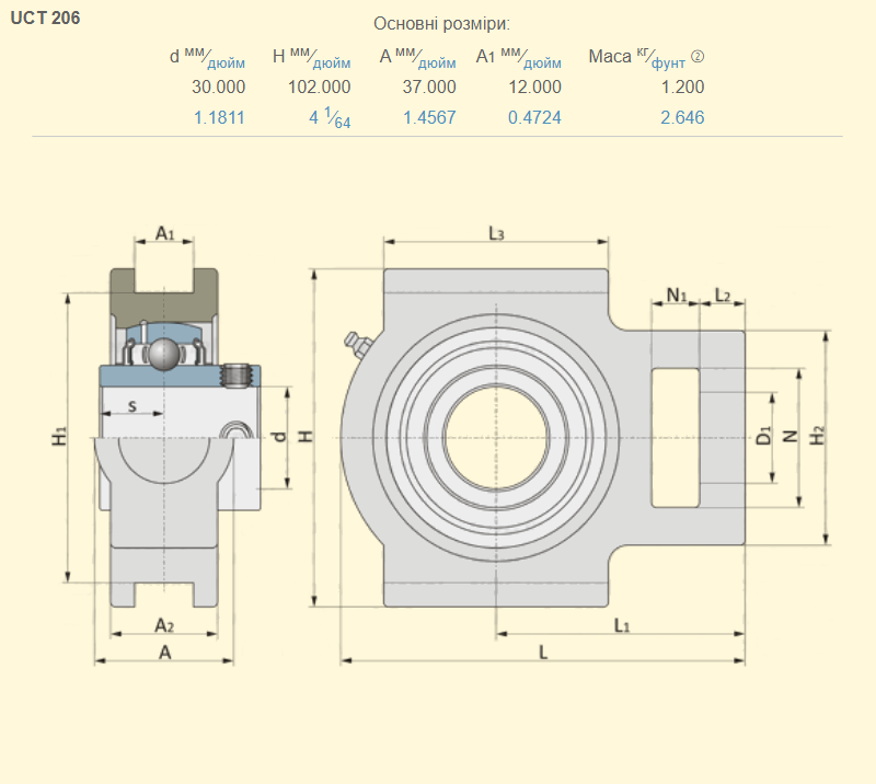 ![]() UCT206 розмір корпуса 113х102х37 діаметр вала 30мм ![]() UCFC206 розмір корпуса 113х102х37 діаметр вала 30мм |