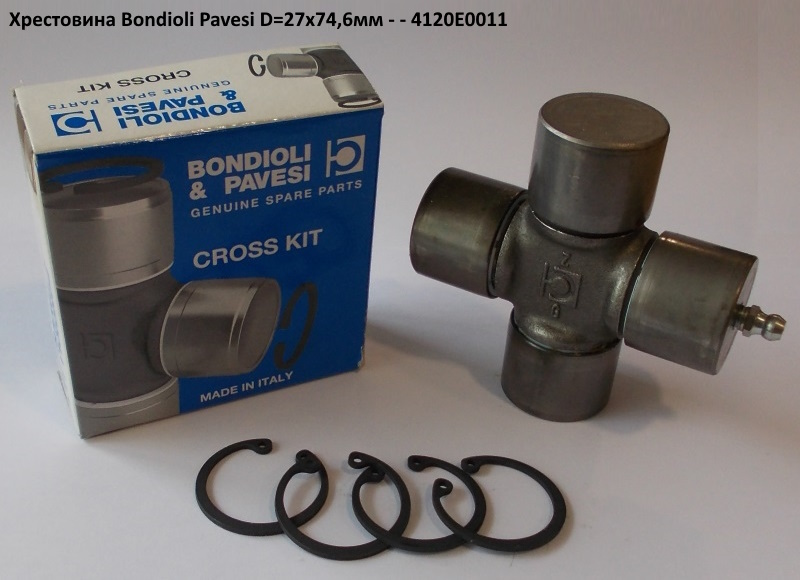 ![]() Хрестовини карданного вала Bondioli Pavesi (Італія) 27х74,6мм - 4120Е0011 |