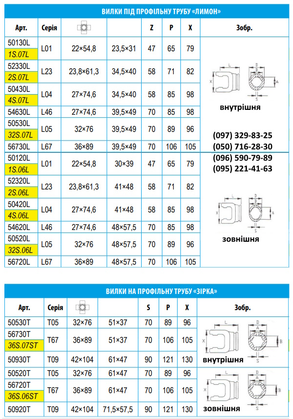 Хрестовини / Вилки карданного валу популярні розміри Хрестовина на поворотний шарнір |
