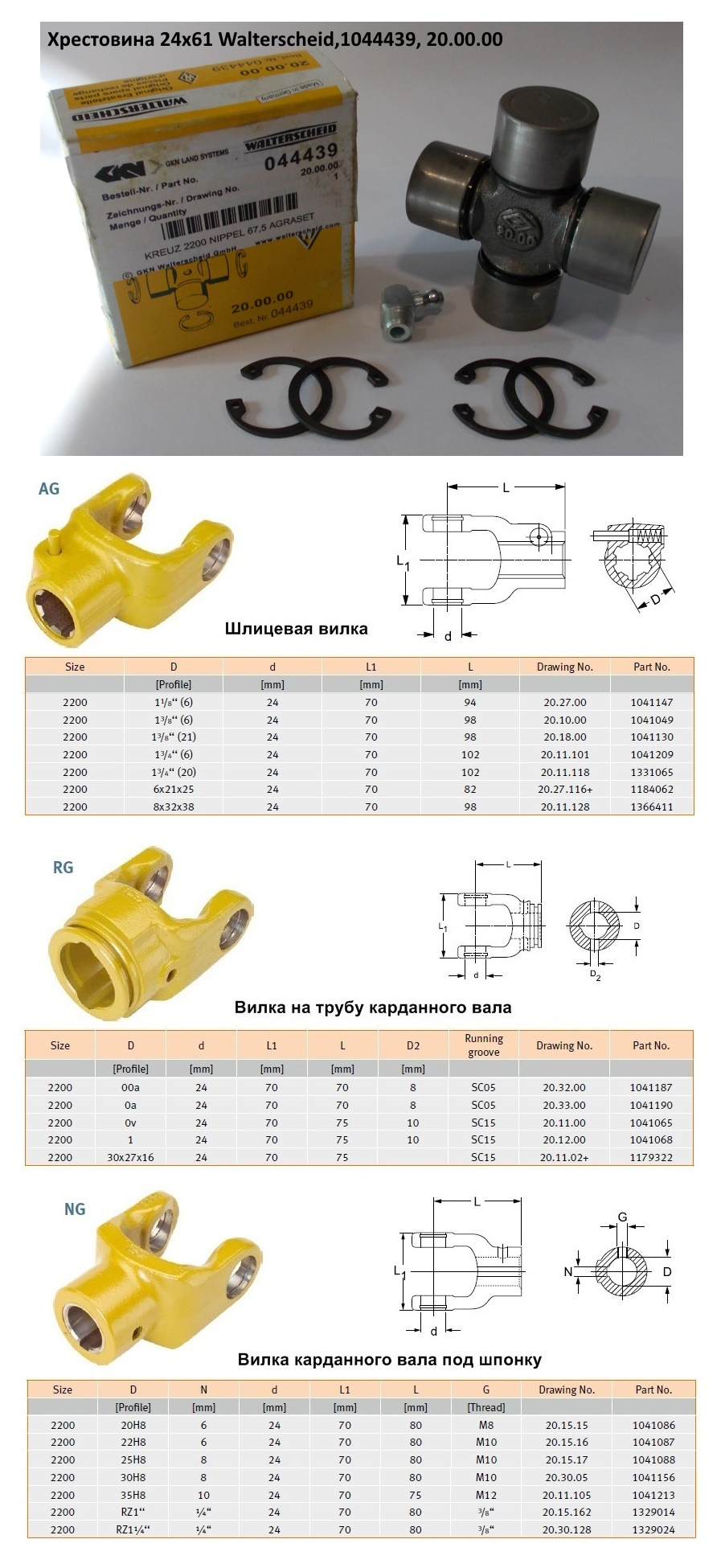 Хрестовини карданного вала Walterscheid (Германія) 24х61 - 20.00.00 | |