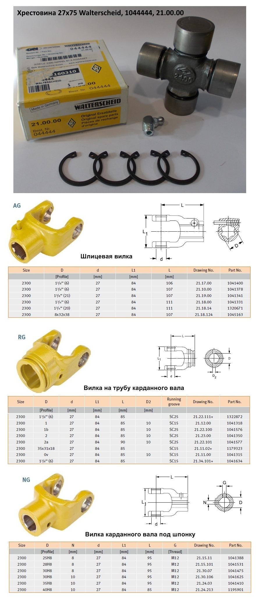Хрестовини карданного вала Walterscheid (Германія) 27х75 - 21.00.00 | |