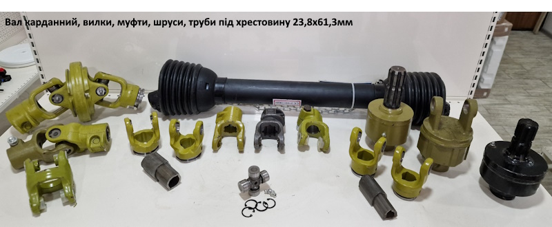 Карданні вали для сільскогосподарської техніки Хрестовини / Вилки карданного валу популярні розміри Хрестовина на поворотний шарнір Труби карданного валу Перехідник карданного валу Обгінна муфта Фрикційна муфта Запобіжна муфта |