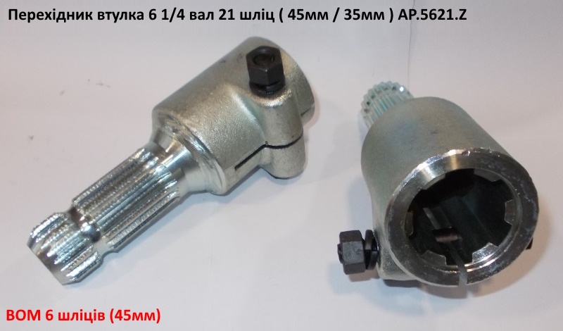 ![]() ![]() перехідник карданного валу з 6(45мм) на 6(35мм) (адаптер ВОМ) ![]() перехідник карданного валу з 6(45мм) на 8 (адаптер ВОМ) ![]() перехідник карданного валу з 6(45мм) на 21 (адаптер ВОМ) перехідник карданного валу з 6(45мм) на 20(45мм) (адаптер ВОМ) |