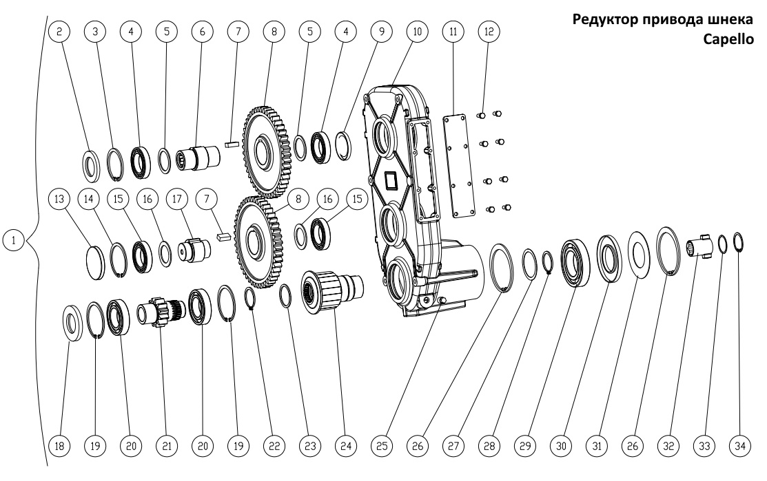 18 02.4437.00 сальнік 50х90х10 19 02.4438.00 кільце стопорне 90х3,0 20 02.4439.00 підшипник 6210 21 04.4508.00 вал шестерня 22 02.4440.00 кільце стопорне 50х3,0 23 04.4509.00 шайба 50,2х59,8х2,5 24 04.4510.00 муфта запобіжна 25 04.4511.00 пробка 26 02.4441.00 кільце стопорне 120х4,0 27 04.4512.00 шайба 65,3х79,7х1 28 02.4442.00 кільце стопорне 65х2,5 29 02.4443.00 підшипник 6213 30 02.4444.00 сальник 65х120х10 31 04.4513.00 шайба захистна 32 04.4514.00 втулка перехідна 33 04.4515.00 шайба 40,3х46,7х1 34 02.4445.00 кільце стопорне 47х1,75 |