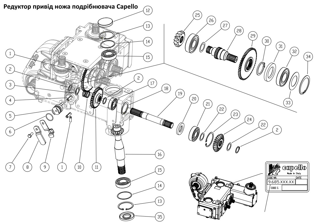 ![]() редуктор привід ножів подрібнювача Capello |