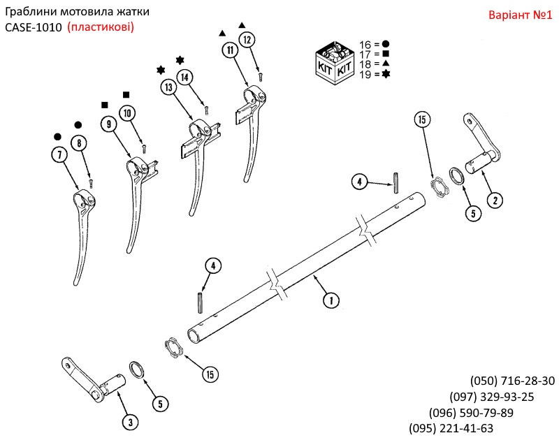 7 граблина кіцева 8 саморіз 3.5 x 1.3 x 16mm 126173A1 9 граблина права 10 саморіз 3.5 x 1.3 x 16mm 126173A1 11 граблина ліва 12 саморіз 3.5 x 1.3 x 16 mm 126173A1 13 граблина центральна 14 саморіз 3.5 x 1.3 x 16 mm 126173A1 15 тулка 126748A1 16 комплект граблин крайніх (поз.7,8) 1989441C1 17 комплект граблин праві (поз.9,10) 1989439C1 18 комплект граблин ліві (поз.11,12) 1989440C1 19 комплект граблин центральні (поз.13,14) 1989438C1 |