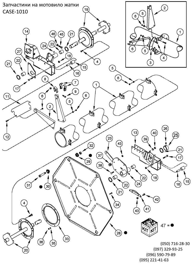 21 шайба 1 21/32" x 2 1/4" x .120" 495-81089 22 ввтулка 167666C1 23 кронштейн 114938A2 24 масленка 1/8"-27 NPT x .91" 80720 25 втулка 114943A1 26 штіфт М10х6 878-1106 27 планка 280262A1 28 щиток мотовила 29 втулка луча мотовила 114951A1 30 гайка 114952A1 31 палець втулки луча мотовила 114942A1 32 гайка М12х1,75 100038 33 кільце оропне 167661C1 34 болт М8х20 8,8 120104 35 шайба М8 87016617 36 гайка М8 43362 37 ролик мотовила 114941A1 38 болт М12х40 8,8 811-12040 39 шайба 12мм 114944A1 40 гайка М12 337475 41 планка 292108A1 42 болт М10х25 10,9 11106231 43 гайка М10х1,5 100037 45 болт 1/2"-13 x 3" 280234 46 гайка 1/2"-13 280431 47 ремкомплект (поз.28-30) 253430A1 |