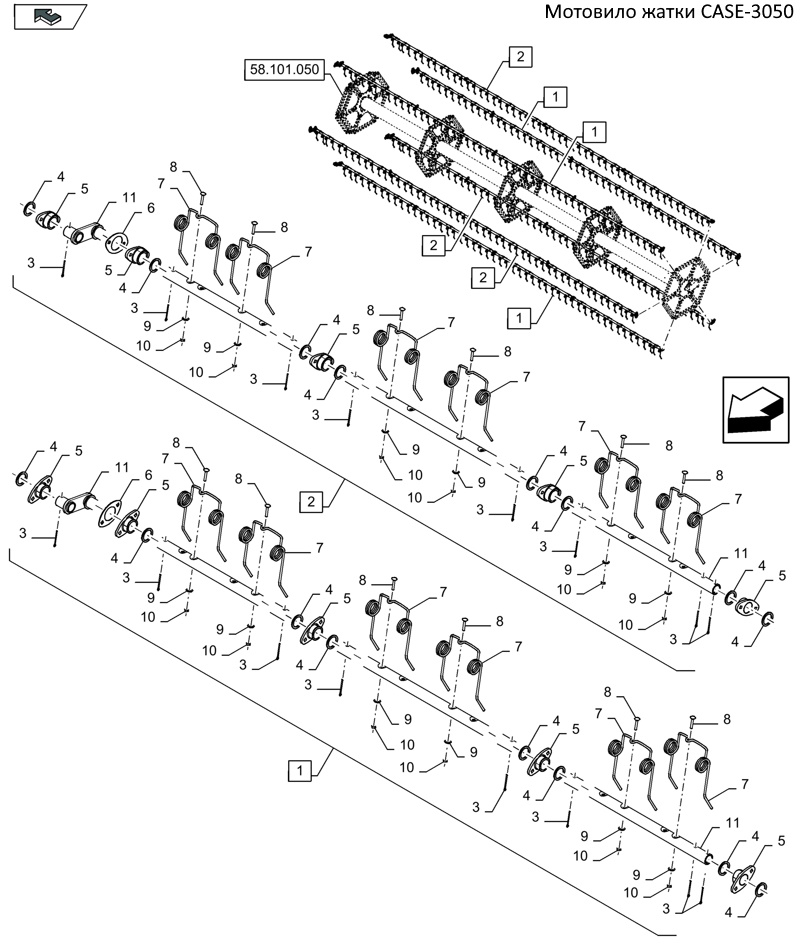 3 300416 шплінт 4 x 50 4 444211 шайба 34,8 х 45 х 3 5 9832294 втулка мотовила 6 84432661 кронштейн втулки мотовила 7 9819750 граблина мотовила 8 9814004 болт кріплення граблини М8х45 8.8 |