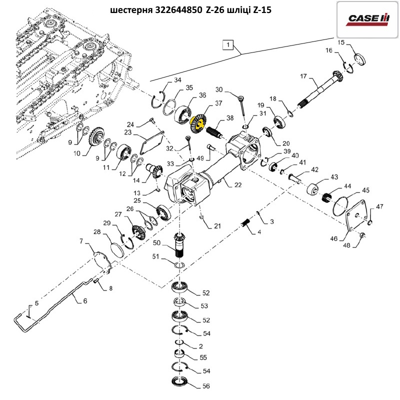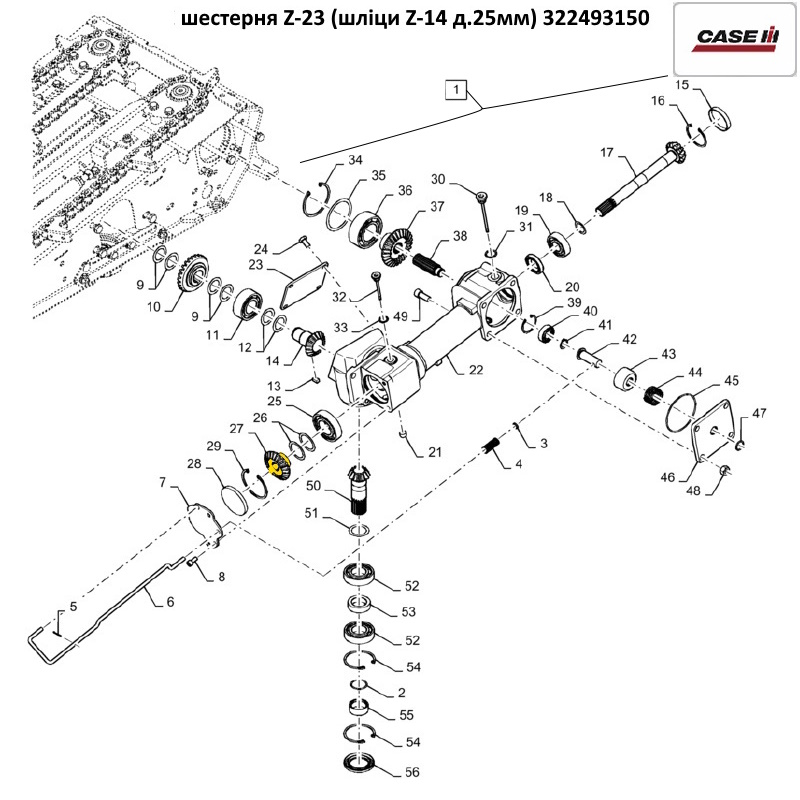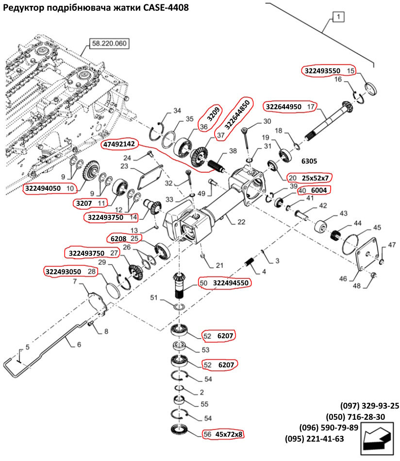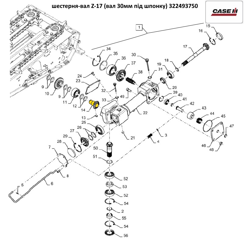 1 322592700 редуктор подрібнювача CASE-4408 1 322592700R редуктор подрібнюача CASE-2108 1 322592700C редуктор подрібнюача 2 14458480 кільце гумове 34,6х2,62 3 322645550 шайба 4 322645450 пружина 5 10734301 штіфт M2x18 6 322645250 ручка 7 322645350 кришка 8 14302821 гвинт M8x1,25x18 9 322493900 шайба регулювальна 10 322494050 шестерня 11 28043420 підшипник 3207 12 322493800 шайба регулювальна 13 350384614 шпонка 14 322493750 шестерня 15 322493550 заглушка 16 370012 кільце стопорне W62 17 322644950 вал-шестерня 18 322493400 шайба регулювальна 19 20996680 підшипник 6305 20 350358354 сальник 25х52х7 21 350359405 пробка 22 322644750 корпус редуктора подрібнювача 23 322494150 кришка 24 11106021 болт M10x1,5x20 8.8 25 20915780 підшипник 6208 26 322493200 шайба регулювальна 27 322493150 шестерня 28 322493050 заглушка 29 11067976 кільце стопорне W80 30 322645750 щуп 31 322498950 шайба мідна 22х28х1,5 32 322645850 щуп |