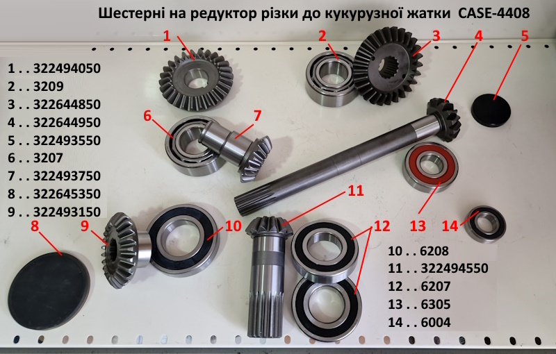 зірочки бокові (приводні) зірочка натяжна бокова вал карданний промопора карданного вала храповик привода редукторів муфта запобіжна (привода редуктора) муфта запобіжна бокова з зірочкою носок боковий носок передній (варіант №1) носок передній (варіант №2) капот (варіант №1) капот (варіант №2) |