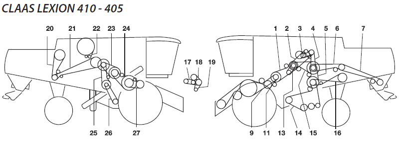 Ремни на комбайн Claas Lexion 405 схема ремней комбайна Клаас Лексион 405