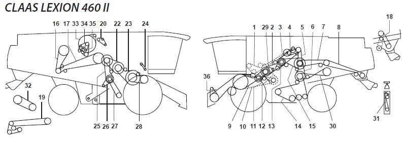 Запчасти на комбайн Claas Lexion 460 II (запчасти Клаас Лексион 460)