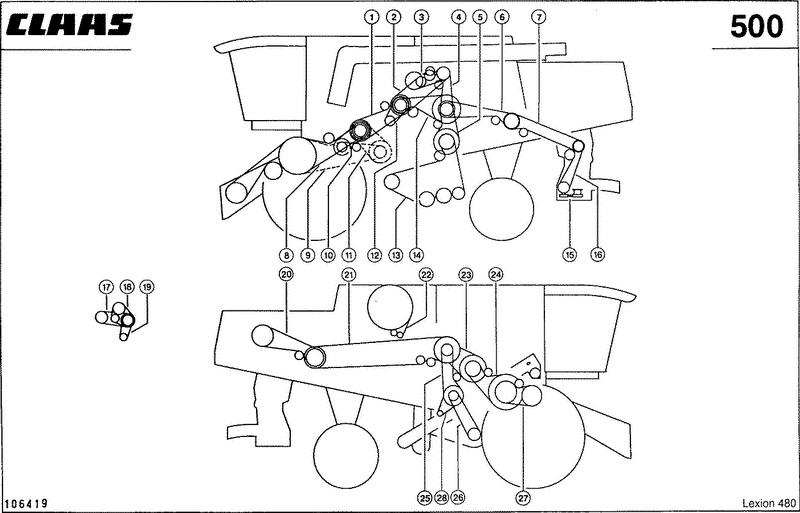 Ремни на комбайн Claas Lexion 480 схема ремней комбайна Клаас Лексион 480