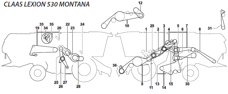 Ремни на комбайн Claas Lexion 530 Montana схема ремней комбайна Клаас Лексион 530