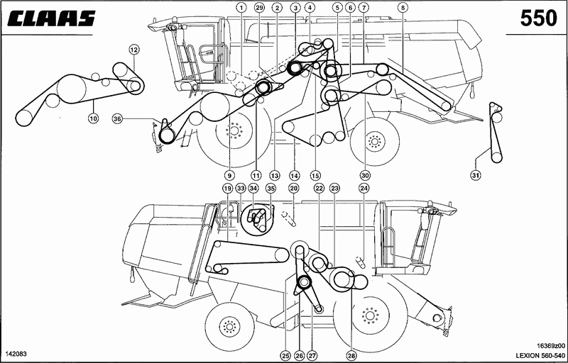 Ремни на комбайн Claas Lexion 540 схема ремней комбайна Клаас Лексион 540