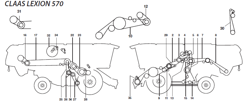 Ремни на комбайн Claas Lexion 570 схема ремней комбайна Клаас Лексион 570