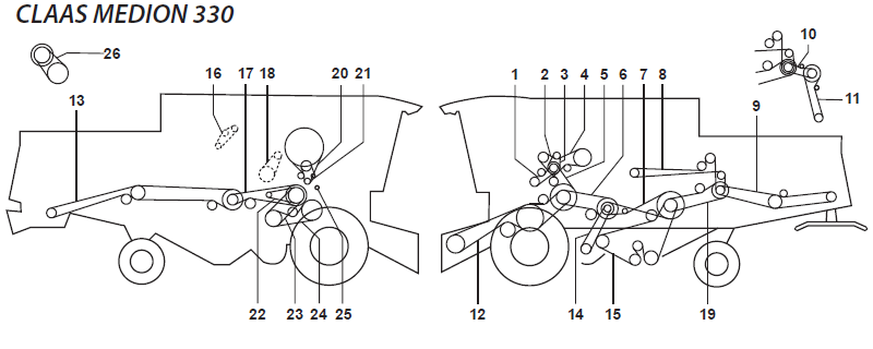 Ремни на комбайн Claas Medion-330 схема ремней комбайна Клаас Медион 330