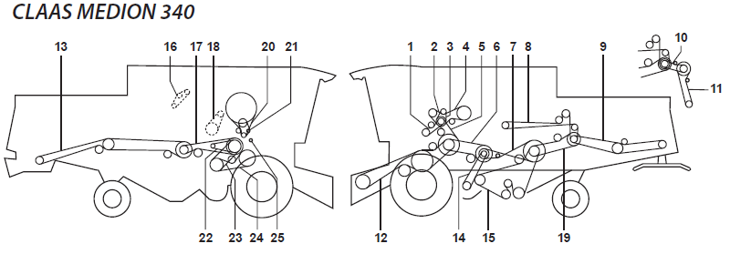 Запчасти на комбайн Claas Medion 340 (запчасти Клаас Медион 340)