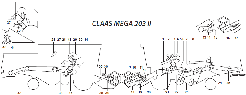 Ремни на комбайн Claas Mega-203 схема ремней комбайна Клаас Мега 203