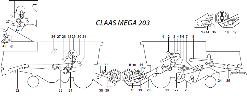 Ремни на комбайн Claas Mega-203 схема ремней комбайна Клаас Мега 203