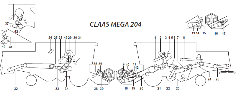 Ремни на комбайн Claas Mega-204 схема ремней комбайна Клаас Мега 204