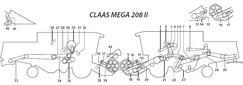 Ремни на комбайн Claas Mega-208 схема ремней комбайна Клаас Мега 208
