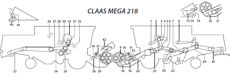 Ремни на комбайн Claas Mega-218 схема ремней комбайна Клаас Мега 218