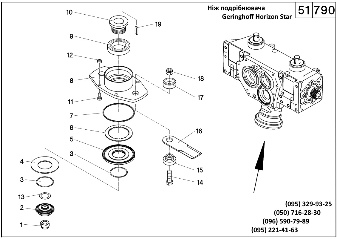 11 042203 болт M10x20 - DIN 912 - 10.9 12 040009 гайка M10 - DIN 985 13 040150 шайба регулювальна 28x40x5,5 - DIN 988 14 040947 болт кріплення ножа M14x45 - DIN 933 - 10.9 15 502847 втулка ножа 16 502848 ніж подрібнюввача Герінгофф 200х60х5 17 502676 захист гайки 18 042006 гайка M14 - DIN 985 - 10 19 041420 шпонка 8x7x32 - DIN 6885 - 502775 тримач ножів в зборі Герінгофф (поз.1-13) |