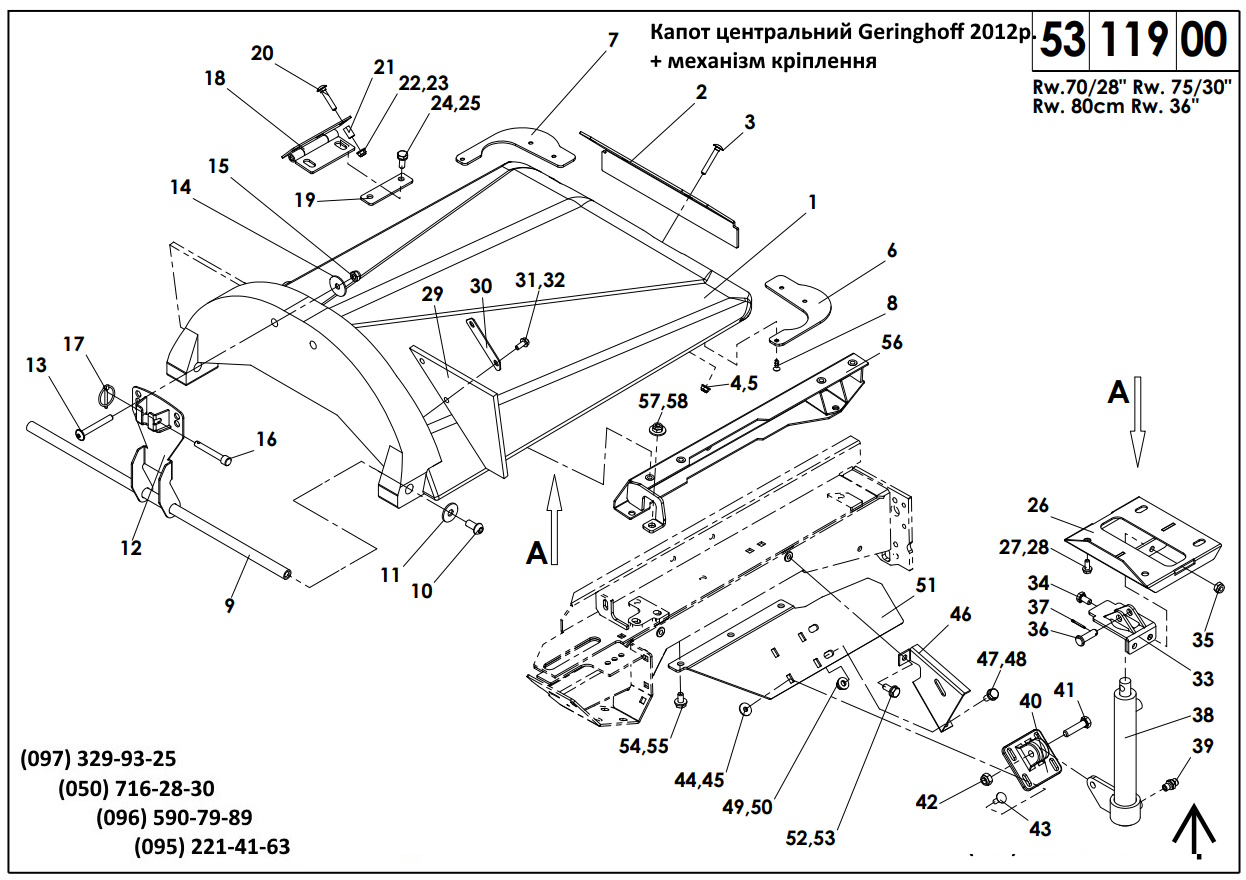 24 040418 болт M10x25 DIN933 25 040231 !!!! Form M DIN1524 26 504640 кронштейн 27 040604 болт M10x25 DIN933 28 040216 шайба 8,4 DIN9021 29 504154 уловлювач качана 30 504169 пластина 31 040751 болт M8x25 DIN933 32 040201 шайба 8,4 DIN125 33 504655 кронштейн 34 040472 болт M10x20 DIN933 35 040009 гайка M10 DIN985 36 041310 палець ø12x40x34,5 DIN1444 37 041311 шплінт ø3,2x25 DIN94 38 503237 циліндр гідравлічний лівий 38 503238 циліндр гідравлічний правий 39 026067 штуцер 40 503240 кронштейн 41 040466 болт M12x50 DIN933 42 040010 гайка M12 DIN685 43 040413 болт M8x25 DIN603 44 040216 шайба A8,4 DIN9021 45 040008 гайка M8 DIN985 46 503245 кронштейн лівий 46 503246 кронштейн правий 47 040418 болт M10x25 DIN933 48 040202 шайба A10,5 DIN 125 49 040231 !!! Form M DIN1524 50 040009 гайка контрящя M10 DIN985 51 503230 щиток лівий 51 503230 щиток правий 52 040418 болт M10x25 DIN933 53 040202 шайба A10,5 DIN125 54 040472 болт M10x20 DIN933 55 040231 !!! Form M DIN1524 56 501348 кронштейн лівий 56 501349 кронштейн правий 57 040217 шайба A10,5 DIN9021 58 040009 гайка контящя M10 DIN985 |