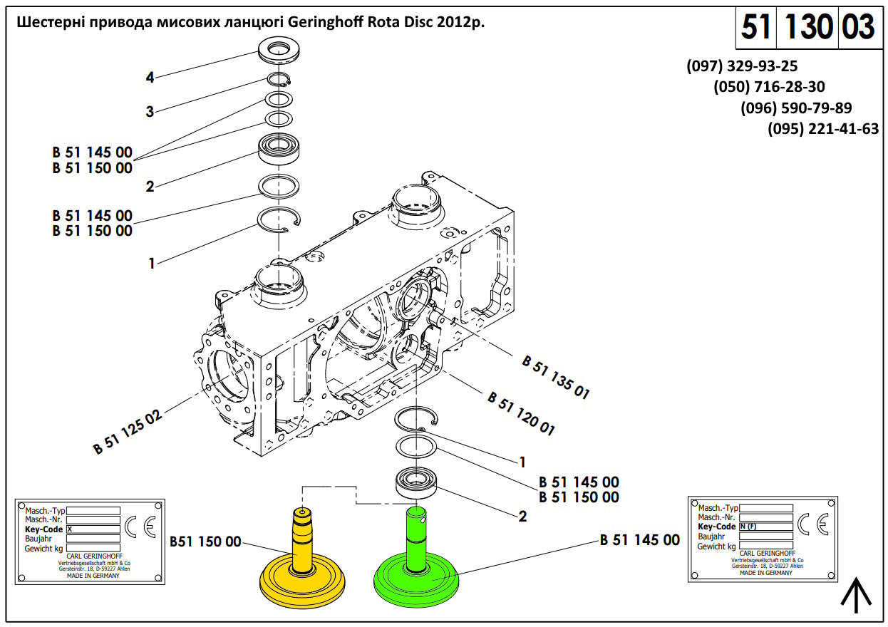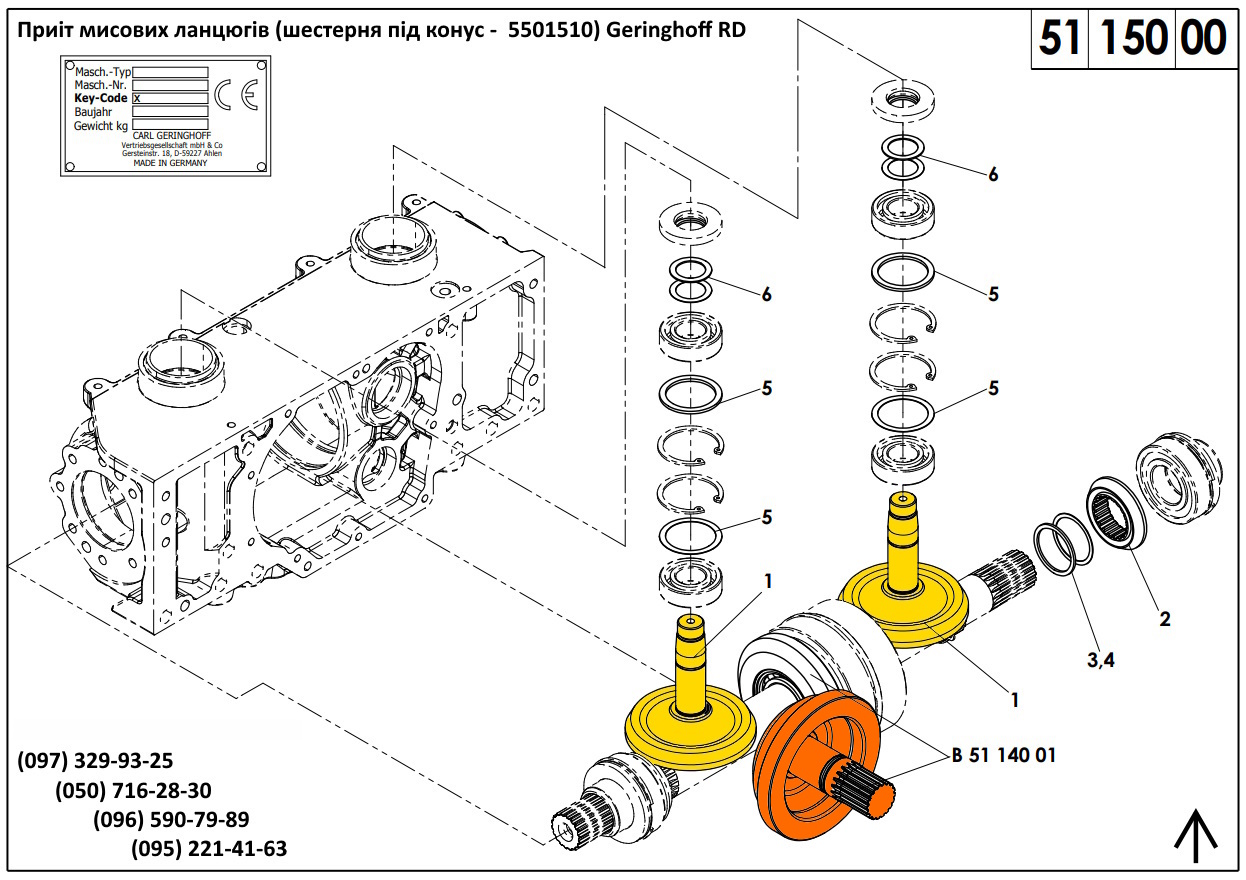 B51 150 00 (дивися нижче) 502012 шестерня 5501510 шестерня (під конусну - привід ланцюга) 042948 шайба регулюальна 40x47x0,1 DIN988 042138 шайба регулюальна 40x47x0,3 042139 шайба регулюальна 40x47x0,5 042140 шайба регулюальна 40x47x1,0 042810 шайба регулюальна 40х47х2,0 040358 шайба регулюальна 42x52x0,1 040359 шайба регулюальна 42x52x0,3 040360 шайба регулюальна 42x52x0,5 040256 шайба регулюальна 25x35x1,0 |
