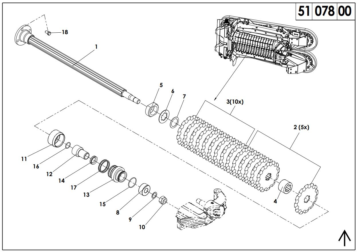 ![]() 5501120 вал ріжучий в зборі (поз.1-18), запчастини на вал ромашок |