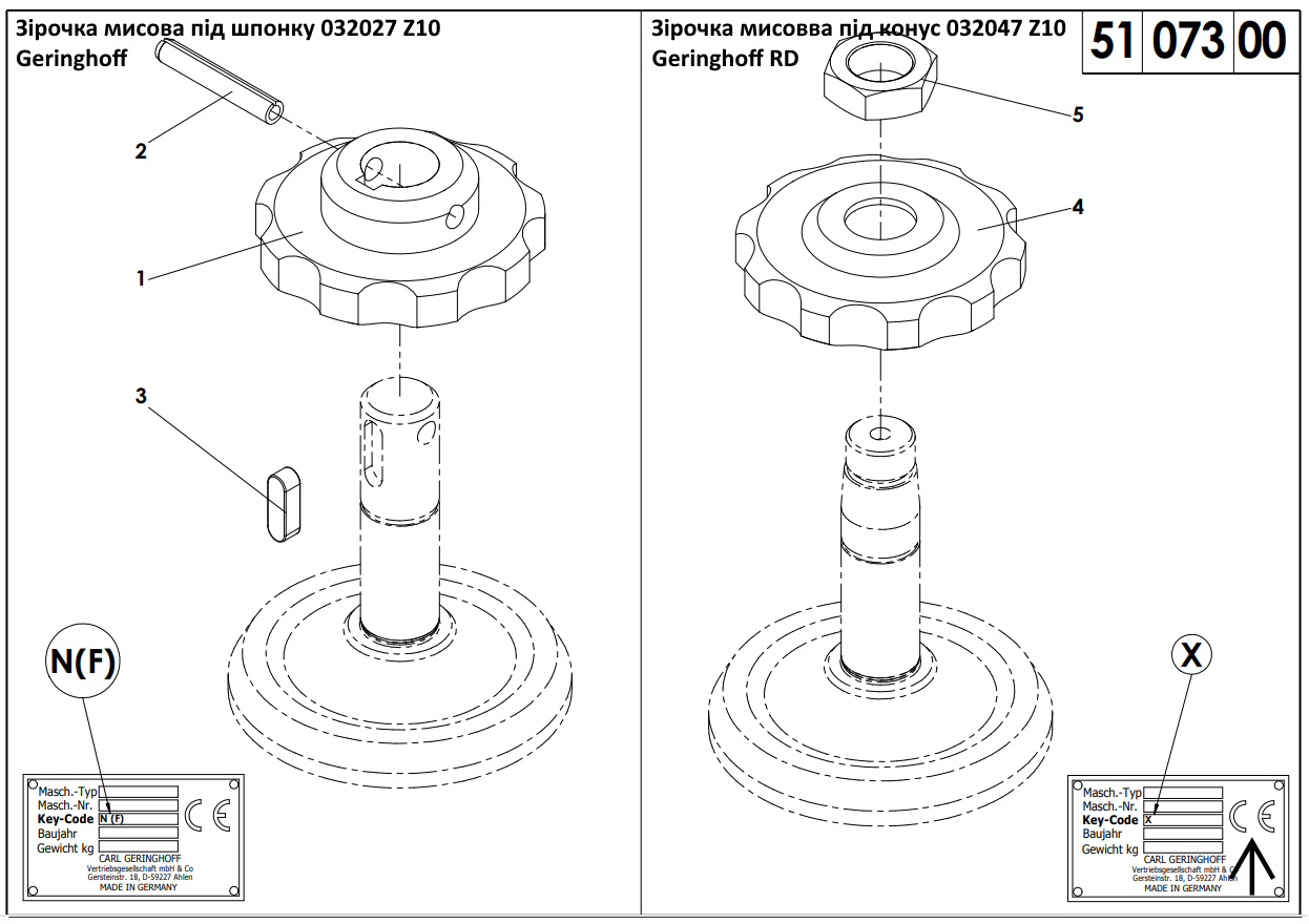 4 032047 зірочка привідна Z10 (під конус) 5 042043 гайка M22x1,5 DIN439 |