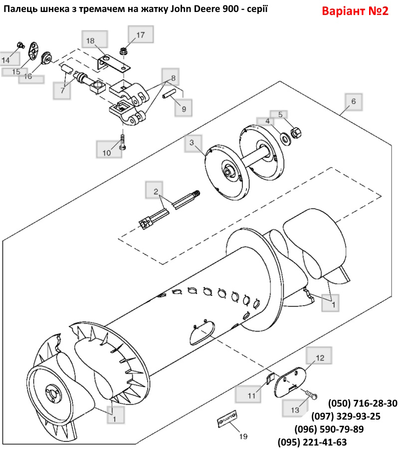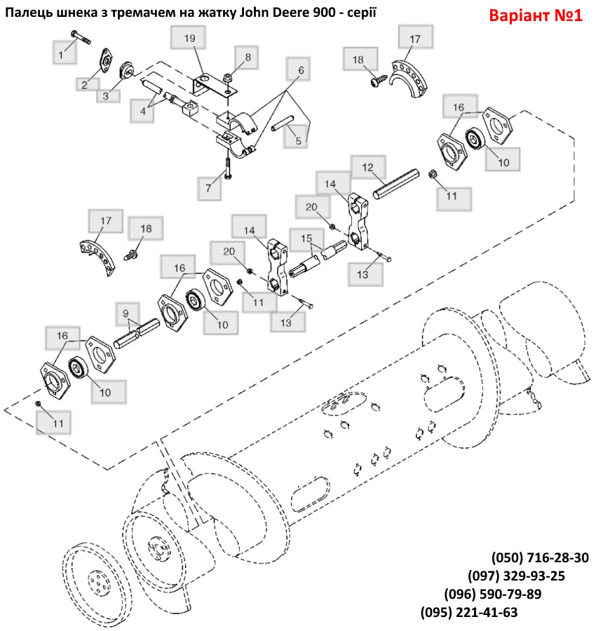11 гайка М10 14M7296 12 вал шнека R.H. H165099 13 болт М12х70 19M7817, HXE82927, H174360, 03M7380, AH171835 14 важіль шнека H174360, H167350, H174947 15 вал шнека H166762 16 корпус підшипника H161529 17 дефлектор L.H. Z20383 17 дефлектор R.H. Z20384 18 болт М8х20 37M7058 19 Фіксатор кріплення пальця шнека жатки H174947, H174360 20 гайка М12 14M7401 .. комплект AH172016 - (INCLUDES (2) AH171884, 34H318, (2) H137328, (4) H86918, (2) H87044, (2) H87192 AND (2) 19M8319) .. комплект AH202965 .. комплект AH202788- (INCLUDES (25) H174947 AND INSTRUCTIONS) .. комплект AH206160 - (INCLUDES (8) H137328, (16) H86918, (8) H87044, (8) H87192 AND (8) 19M8319) .. комплект AH171835 - (INCLUDES (4) 03M7380, (39) 19M8319, (39) H137328, (2) H174360 AND (29) H174947) |