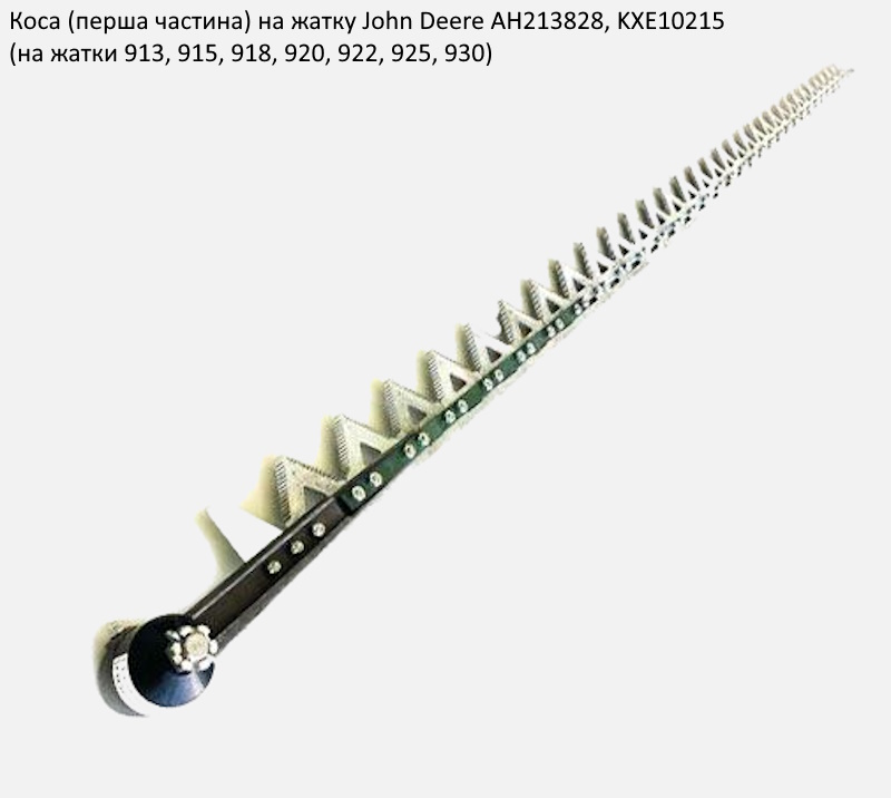 Коса 7,6м на жатку John Deere 925F KXE10215 (коса перша частина - 1шт), AH213829 (коса середня частина - 1шт), AH213829-925 (коса кінцева частина - 1шт), AH202442 (з'єднувач коси - 2шт), H207930 (сегмент - 4шт) ![]() |