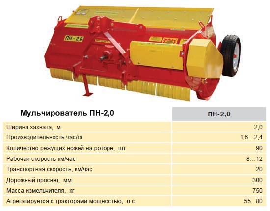 Мульчирователь ПН-2,0 предназначен для измельчения послеуборочных остатков кукурузы, пшеницы, ячменя, подсолнечника, рапса и других культур с равномерным распределением по поверхности почвы измельченных остатков. Высокая плотность расположения универсальных ножей с двусторонней заточкой, их профиль и масса обеспечивают идеальное измелечение растительных остатков. В привод ротора установленна обгонная муфта, которая устраняет динамические нагрузки на трансмиссию при остановке ВОМ.