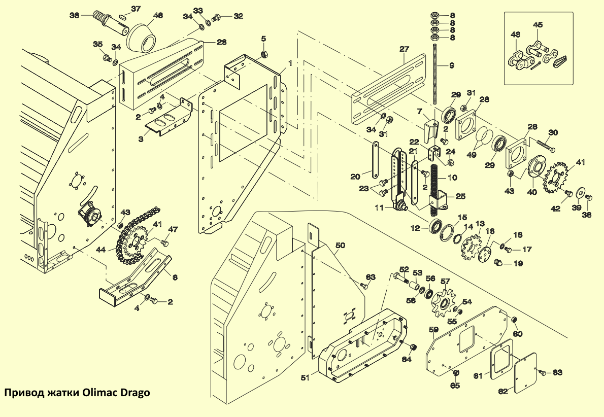 39 . . DR3390 шайба 40 . . DR3400 ступиця 41 . . DR3410 зірочка Z-18 DR3410 зірочка Z-20 DR3410 зірочка Z-21 DR3410 зірочка Z-22 DR3410 зірочка Z-23 DR3410 зірочка Z-24 DR3410 зірочка Z-26 DR3410 зірочка Z-28 DR3410 зірочка Z-29 DR3410 зірочка Z-30 42 . . DR3420 болт кріплення зірочки 43 . . DR3430 гайка 44 . . DR3440 ланцюг боковий Олімак Драго 45 . . DR3450 ланка з'єднувальна 46 . . DR3460 ланка перехідна 47 . . DR3470 ступиця зірочки 48 . . DR3480 захистний кожух 49 . . DR3500 розпірні кільця 50 . . DF3510A щиток лівий 50 . . DF3510B щиток правий 51 . . DF3520A картер ланцюга лівий 51 . . DF3520B картер ланцюга правий 52 . . DF3530 болт 53 . . DF3540 кронштейн натяжної зірочки 54 . . DF3550 прокладка 55 . . DF3560 гайка 56 . . DF3570 підшипник 57 . . DF3580 зірочка натяжна 58 . . DF3590 кільце стопорне 59 . . DF3600A кришка копруса ліва 59 . . DF3600B кришка копруса права 60 . . DF3610 гайка 61 . . DF3620 прокладка 62 . . DF3630 кришка 63 . . DF3640 болт 64 . . DF3650 інспекційний болт 65 . . DF3660 контрольний болт |