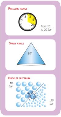 Возможно, использован в высшем давлении (выше 2.5 бара), чтобы улучшить целевой охват (более чистые капельки).